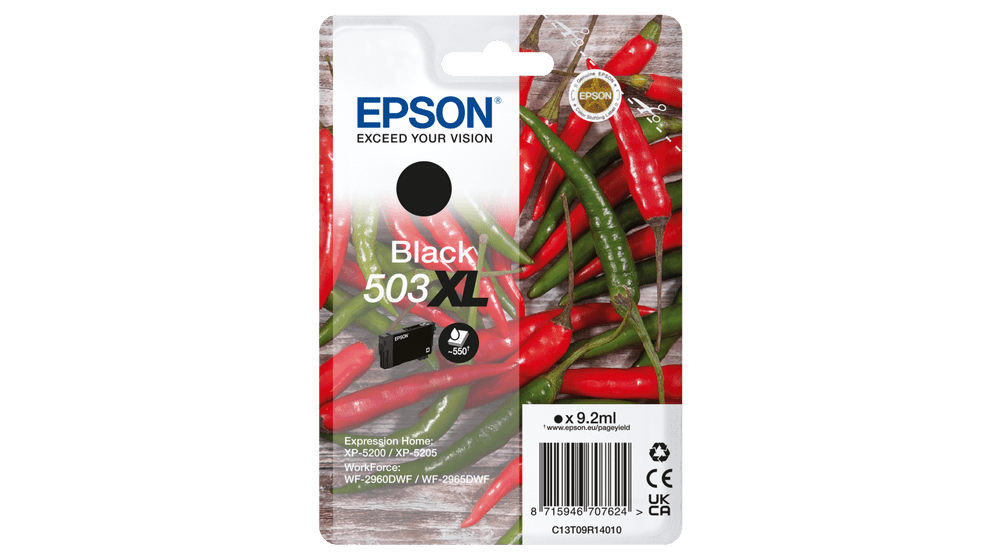 Epson 503XL, Højt (XL) udbytte, Sort, 9,2 ml, 1 stk, 550 Sider, Enkelt pakke