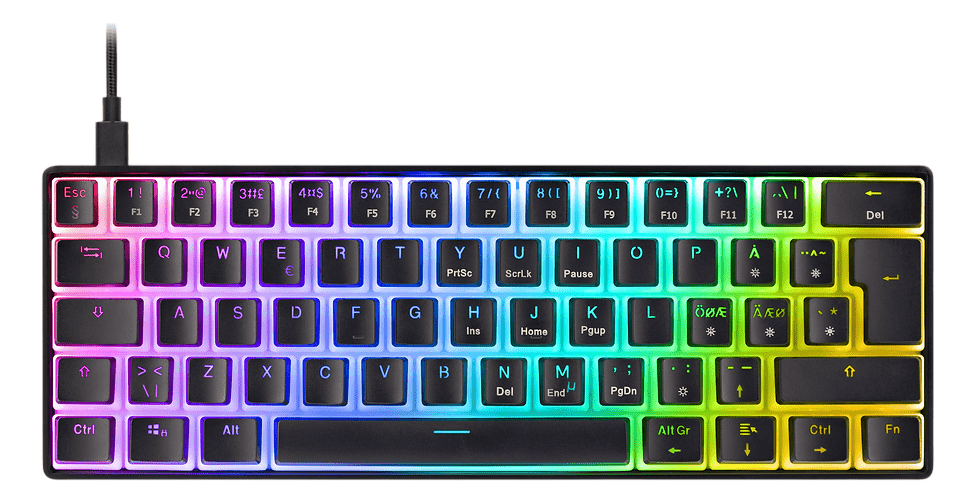 Deltaco DK475, 60%, Ledningsført, USB, Mekanisk, RGB LED, Sort