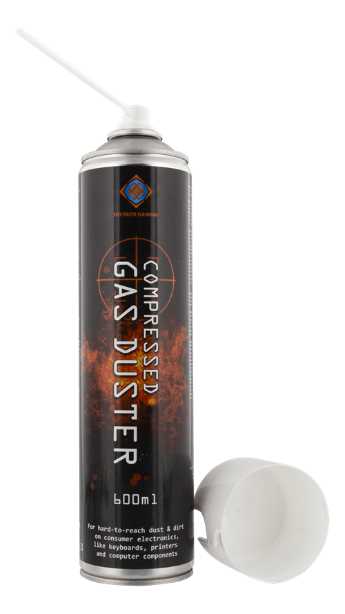 DELTACO GAMING Komprimeret luft, 600ml, fleksibel dyse, sort Denne massive trykluftsbeholder kan bruges til at rense svært